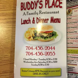 Loved Buddy's Place!!Recommend: Without question!Place was on a Main Street corner, somewhat simple as a business front but don't let that fool you! Unique, eclectic interior, and quick to be seated. Menu was FILLED with options, super friendly service, meals were quick, perfect and delicious with zero issues on all four orders. To boot, the taste on all food was above par, and satisfying to my entire party. Absolutely stop in, nothing at all to note negatively, this is a down to earth, awesome restaurant that won't break your bank!