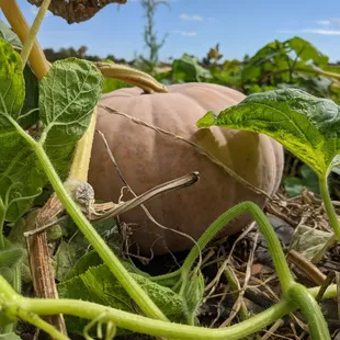 ows a pumpkin on the ground