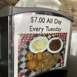 Greeted with a wonderful southern smile. Charming establishments with really cute pig decor. And a Tuesday BBQ Plate special. We tried the special and it was a nice deal. The sides were top notch and a good variety to choose from. The BBQ wasn't our favorite. It was pre-sauced and a bit on the salty side. Next time definitely trying the chicken, it looked delicious!!!