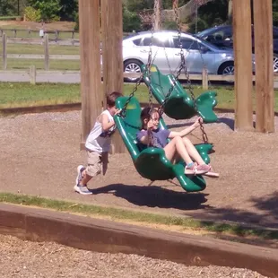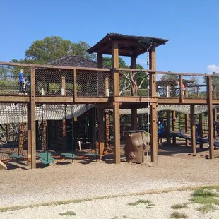 Off the beaten track but the best public playground EVER! Bring snacks and drinks. Pack a picnic. Bring a blanket and lawn chairs. Pack a frisbee , a kite, or a drone. There are picnic areas and big clean public restrooms. Lots of parking makes it convenient. You will want to stay and play for hours. Hint: peagravel paves the play areas so don't wear flip flops.