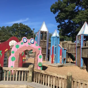 Amazing park that just had the kids area (Kids Planet) remodeled in 2021. I have fond childhood memories of running along the old wooden castle but I am glad it's gotten a complete overhaul (fewer splinters, ha). Two playground areas, one for 2-5yo and one for 5+, separated to keep the littles safe. Other features include a mister area, music station, zipline play structures, and multiple picnic shelters. Each play area also has inclusive accessible swings to include kids of all abilities. Massive parking lot, water fountains, and nice clean restrooms with heating/AC and changing tables (at least in the family restroom). Only downside is the lack of shade. The play structures and rubber flooring get HOT in the summer. Overall a fantastic park that got a well-thought out facelift.