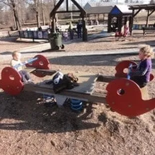 Such a fun park. Multiple play areas for different age groups and interests. Plenty of room to run and play. My kiddos could have been on the zip lines all day long! Clean bathrooms and plenty of benches and picnic tables. Great park!