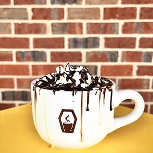 The Aesthetic: Cute, spooky coffee shop in a family-run funeral home with afterlife themed drinks and pastries. I read someone's review about it being too spooky themed, but I think it was respectful and classy for patrons to enjoy. The workers were kind! The Price: The prices were reasonable and competitive with other themed coffee shops around CLT metro. The Parking: There was a dedicated lot with tons of parking around the building, we didn't have any trouble getting a spot. My Order: The Undertaker (Andes mint latte) and The Heaven on Earth (Vanilla cold brew) were both delicious and not too sweet. My favorite was the Black and White Brownie, I will come back again just for this! The Pumpkin Chocolate Chip Cookie was also awesome, but I forgot to take a picture, it was too good! The Conclusion: Whether you're grieving, celebrating someone's life, or just coming by for your morning coffee, this is the coolest coffee shop in Concord. It's a must try, don't knock it til you try it.