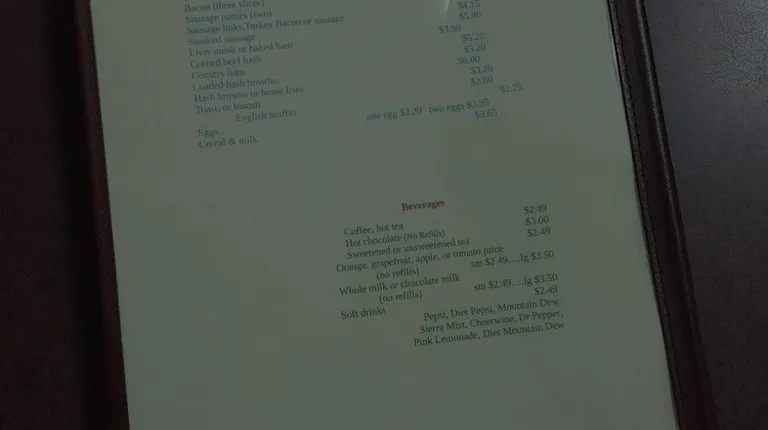 been a new 'New Management' sign flapping in the breeze for a couple of weeks now so I figured "why not... what have we got to lose? maybe a couple minutes and a few dollars?" so me and Paul stopped in for some chit-chat and a little something from the breakfast menu. first thing you notice walking in is that the management is the only thing new here; the tables and chairs, booths and counter, the NASCAR hangings on the wall (and maybe even the menu) are all turn of the century stuff. Paul says it looks the same as it ever has which is way less comforting than you might imagine.we took a booth on the side and menus, coffee, and waters arrived shortly... Paul got Corine's Special - two eggs easy, bacons, and french toasts; and I had a Casserole - slightly undercooked hash browns, scrambled egg, sausage bits, and cheese, under country gravy with a biscuit on the side to which I added several blasts of hot sauce.service was fast and efficient; coffee was hot, black, and abundant; food was good by any standard but not stellar. it's a breakfast and breakfast is rarely stellar even if it's the special... so just keep serving people the food like like they like it and we'll all get along fine.