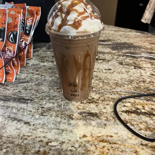 Chocolate mocha with lots of whipped cream and mocha drizzle!! Total yumminess!!