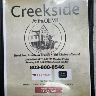 We tried Creekside yesterday for the first time. the breakfast was delicious. We can't wait to go back to try lunch. The service is great, prompt and friendly. the old mill exposed stones and local art make the atmosphere inviting. Highly recommend!