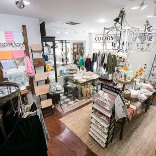 Love this downtown store. It is welcoming even as you walk up with the painted 'Love Where You Live' mural painted by Caroline Simas to the flowers out front. You enter and are welcome by a pleasant scent and usually seasonal. I love that it is intimate feeling as you peruse the various rooms and that they are categorized whether apparel, baby items, house ware, etc. gift wrapping available. They also have wonderful, well thought out events as well as support local charities different times of the year.
