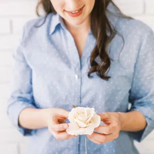Aryn did a magnificent job on our wedding cake! The cake testing was my favorite part of planning our wedding. Aryn made us feel like family and easy to do business with. She was in contact with us, and called before the wedding to confirm and help us feel at peace with the delivery. We also rented the cake platter and I am super glad we did! The visual appearance turned out better than we could have imagined. She handmade these gorgeous blue hydrangeas for the cake topper. We decided fondant over real flowers just to be on the safe side as our wedding was on a hot May day and didn't want a real flower to droop, prior to cutting the cake. the cake was classy and elegant, just beautiful! We ended up going with vanilla just because we wanted to ensure that everyone would like the cake. The cake was moist, fluffy (not too airy, just right) and sweet! I know she uses real butter as I could taste the buttery richness verses crisco like many of the other local bakeries bake with. She also made macaroons for a party favor for our guests. My husband is a HUGE macaroon fan and he wanted to put them all in a bag and bring them to our hotel that night as a late night treat! Aryn also went above and beyond and provided little boxes that had a hydrangea sticker with them, to seal them close for when the guest left for the night. I would HIGHLY recommend Delish Cakery for your wedding/birthday etc... I know they have my continued business! ~Ashley & Jayson
