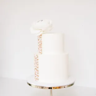 Our cake from Delish was both beautiful and tasty! We were able to pick the flavor thanks to the fun tasting box, and Aryn was lovely to work with. We had a very specific idea of what we wanted for our wedding cake, and her design was perfect. It was the perfect day, with the perfect cake!