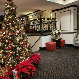 Lobby flowers and bar.