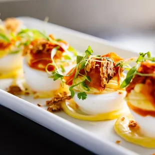 I had a lovely experience. I ordered the Gnocchi and deviled eggs for room service, and I had the Salmon, Smoky Old Fashion, and the Lemon Posset for dinner with a group. I stay at the Dunhill hotel for two nights and was greeted with this lovely Charcuterie board upon my arrival.