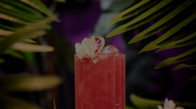 Seven Deadly Sins -- Vodka, Rum, Mezcal, Gin, Tequila, bourbon, Dry Curacao, Beat Root, Lemon, Ginger