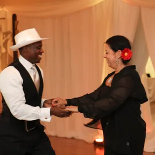 My husband and i started taking dance lessons here in May of 2013 and dance has become part of our lives! Starlina is an excellent teacher and breaks down the dances so that even someone with two left feet, like mine, can be dancing across the floor in no time! We attend as many group lessons as we can, take individual lessons each week and are thoroughly enjoying the new Friday night dance parties! We have the confidence to go to local dances and dance the Waltz, Foxtrot, Salsa, Cha Cha, Tango and Swing!
