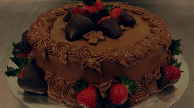 a chocolate cake with strawberries on top
