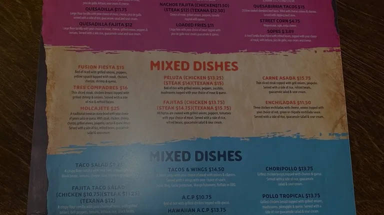 The food is good although for the quantity I feel it's a bit pricy. Our favorite menu options are their dinner nachos and theTaco Tuesdays tacos are delicious. They also have a nice salsa bar.