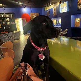 Cute place the mixes art with cocktails and a puppy, who can beat that. The music was a bit loud for us but we are older. Love the bartender and her energy and enjoyed the pre show cocktails