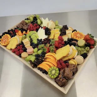 a platter of fruit and cheese