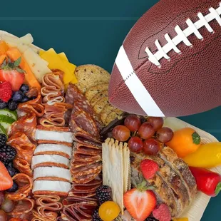 a platter of meats and vegetables