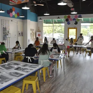 Went to a birthday party. Great set up and all the art supplies you need to make great memories. My daughter had a blast. The owners are very involved and help guide an easy to follow class. My daughter left happy with a beautiful piece she was proud of. I highly recommend this place and can't wait to have a party here soon! FYI- there are adult parties and events too!