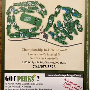 The last time I played this course was in 1999. It was somewhat new at the time and built on re-claimed property from a land fill.The only hole I remembered was #9, over the Grand Canyon and up a massive hill. The tee box is lower down the hill so you are staring up this hill with no possible way to see over the hill or the flag stick on the green.I was most impressed by the driving range and practice area for chipping and putting. Nearly every course I have gone to in the CLT area is challenged to keep real grass growing on the driving range but not this place.Over all this course is about what you would expect for a Charlotte area public course. The tee boxes are in decent shape, the fairways are spotty with some grass and bare spots. If you have not played a course before, I find there is sometimes a challenge getting on the correct cart path from green to tee. Same for this course, the paths are not well marked.What I found exceptional was the condition of the greens. Not a single bare spot on any of the 18 greens. All well cared for and rolling true.The cart paths are a disaster. There are quite a few blind shots, up hills and severe dog legs. There is a fair amount of water and you'll be punished for missing the fairways,I highly recommend the Perks + passport for affordable golf. There are 5 CLT area golf courses that will offer you discount golf and added discount if you are a Senior. I played 18 holes with a cart for $34.00 bucks.Even though they have a dining room and kitchen, it remains closed due to COVID.If you're distracted by the sound of gunfire, you might want to avoid this course as there is a nearby shooting range.