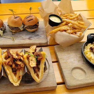 I had a delicious burger and my guy had some AMAZING chicken and waffle tacos... yes, tacos! I thought that was so unique and cute in the taco holder. I didn't love the fries but nothing was wrong either. They just weren't anything special. Service was friendly and helpful in choosing a drink (I like sweet). The building is so big and there is no way to feel cramped. They also have an upstairs area that I'm sure makes a great event space for birthdays.