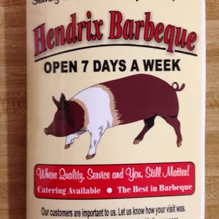 Hendrix BBQ is a staple in the area! Would definitely recommend them! Quality food & great service!