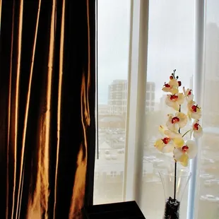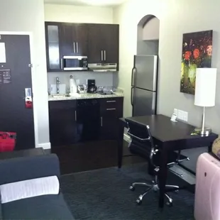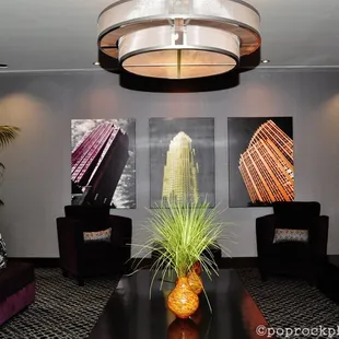 I must say this hotel surpassed my expectations. It's one of Uptown's newest hotels so none of my friends could give me their opinions about it but I decided to book a room here for our Anniversary/Birthday romp through Charlotte. It's been a tradition of ours to get so tipsy we have to stay the night in Uptown after watching a hilarious movie. For example, 1st Anniversary The Hangover, 2nd Get Him to the Greek, 3rd The Hangover 2 :-) So anywho, I made the reservation and told the gentleman on the line it was our anniversary. When we checked in, Chad, the front desk clerk was very pleasent and was dressed sharply. We got upstairs to our room on the 16th floor and we were amazed. No lie, our room looked like a mini version of the room we stayed in at Boston's W Hotel. Except the W did not have a kitchenette in it. There were dark hardwoods, a stainless steel refrigerator, flat top stove, sink, dishwasher, and stocked cabinets. In the sink was a beautiful bouquet of flowers, a little congratulation note from guest services, and a plate of chocolate covered strawberries *wink*. Now let me say this, we have stayed at the Westin and the Omni Hotel and told them the exact same thing and received no flowers and no strawberries-so this place is on point! Throughout the room was modern graphic art of Charlotte's Skyline which I thought was so cool. There was the usual city guide for out of town patrons and menu offerings for the Hotel's Bar. We checked out the bathroom that had a pocket door for space efficiency and a spacious shower. The California King was plush and comfy and we had a great view of the city from our room.On our way out, we noticed the lobby area that was very chic, the color combination of gray, dark plum, apple green and silver was sooooo David Bromstad-ish (of HGTV). I wanted to check out the terrace that contained a sunken seating area, fire place, and hot tub, buuuuuut we didn't make it up there ;-).All-in-all the Sierra Hotel is one of Charlotte's best hotel's, the service is top-notch, decor is uber chic, with great amenities; we're talking mini-W Hotel here...Five Stars! :-)