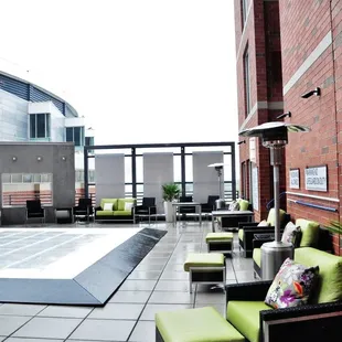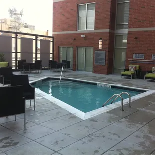 This is a very nice hotel. Everything is new and clean. I was greeted respectfully. It was decently priced for being Uptown. There was an extra charge for keeping your car here which is expected for Uptown. The pool here is on the north side of the building. The deck does not get much sun at all. The pool did not get sun all day. However, the pool is heated and the out door furniture is very relaxing. It is on the seventh floor and has some good views. The pull out bed did not have any bedding and when we called they only brought us sheets, no blankets. They brought them up the next time though. They also closed breakfast early. If you want breakfast you will have to get there sooner than 10 minutes before they close. Overall, it was a pretty good experience! This hotel is right next to Time Warner Cable Arena and you can walk anywhere Uptown. They also have robes you can use. My favorite part about the hotel was the room set up. Our room had a FULL refrigerator, a two burner stove and a microwave. Very nice layout too. There is also a little store here that sells some random stuff. I would recommend this hotel for long term stays. I did not eat/drink at the restaurant at all.