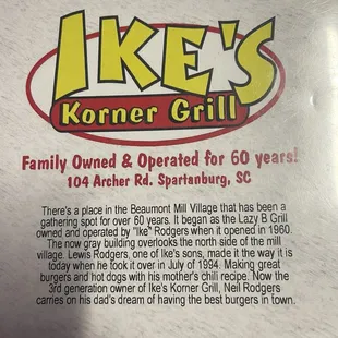 Ike's truly is a Spartanburg local neighborhood hot spot. It's not a big place, maybe even a little cramped on really busy visits nonetheless, it's homey-feel is what keeps the locals returning. Great burgers!!! Gotta get 1 with pimento cheese added to it. I'm not a consumer of alcoholic beverages but if a drink & conversation with the regulars at the bar is what you're looking for, the bar is there. I imagine a very high % of Sparkle City natives would admit to having visited Ike's at least once.
