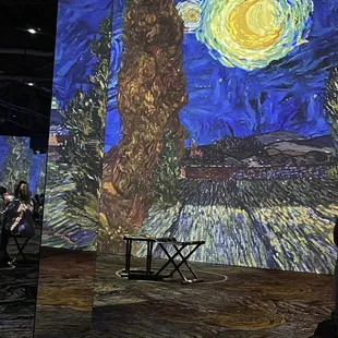 A nice experience but not worth the cost.While visiting one of my besties and her baby, she really wanted to check this Immersive experience of Van Gogh artwork. She's a huge fan, and use to do some kind of work at an art museum in Washington DC, so this place seemed up her alley. She graciously paid $90 for our tickets ($40/adult + taxes and fees), and was sorely disappointed.The old huge warehouse was renovated into a small showcase of Van Gogh art via a few tv monitors and interpreted art sculptures that represent Van Gogh's themes. The main event is the 30 min art instillation that projects on the walls, with strobe lighting and loud music..which is the immersive experience that you're essentially paying for.Of course, there's an overpriced gift shop area..with posters, t-shirts, and art jigsaw puzzles..and a mini bar with over priced snacks items.We were happy to support the culture..but this not truly worth the cost. Thankfully the restrooms were clean (but did not contain any changing tables..and auntie Nneka changed a poopy diaper!!). Also, there was air conditioning and welcoming staff members who were helpful and offered to take our pictures with any of the life sized sculptures.So, its a nice effort..but only if you trying to be supportive of the cause..otherwise..semi hard pass on this one.