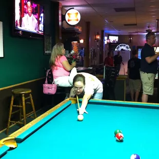 Great pool hall. Nicest tables in the lake area. Beer is always cold, place is always clean, and Mona is always friendly and happy to see you.