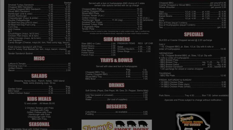 Excellent food, but what stands out most is the service. Waitresses are friendly and stay on top of their patrons.If you want a good barbecue, chicken, or ribs, I would definitely check out Jimmy's. You will not be disappointed.