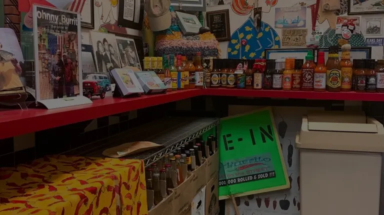 Johnny Burrito is an uptown local staple! The decor is filled with local news, old signs, etc. I see something I haven't seen before every time I go. The line is long at lunch hours but it goes by pretty quickly. If you're in a rush, go right when they open or a bit before they close. You'll be greeted here and if you're a first timer, you'll get a walk through of ordering and a bottle opener key chain. All employees I've interacted with are friendly and efficient. Johnny is on the cashier often, and you'll be charmed by his character!There are themed candy days like Fireball Friday and Twizzler Tuesday, where you'll be handed this when ordering. My go to is the regular burrito with firecracker chicken. Don't forget to add in queso and guac - included in your burrito price. I also ask for a side of Johnny's Ranch (chipotle ranch) and Diablo sauce (hot sauce) to put on my burrito every couple of bites. I rarely leave without a "house red" (cherry sundrop) slush.You won't be hungry after this meal and if you haven't visited - go now!