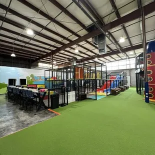 Let me start off by saying the Play Cafe can absolutely get to 5 stars. They have a lot of room for improvement. Pros: -Lots of comfortable seating for parents with good views of the play equipment. - Fun, large play structures that are easy to see into. - Clean- Bathrooms located inside the business-Stroller friendlyCons:- It feels like they rushed to open to grab business for spring breaks. - Playhouses lack a lot. They could be decorated and styled better with more toys in them. Not well thought out. - Cafe not operational. Only a few snacks offered. - Lack of signage with prices or any information- More clear signage needed from outside the building so people know which doors to enter. Parents be warned it's a long walk, especially if you're parked in the back extended lots. Really glad I had my stroller. Please take 2-3 weeks and close down and finish the playhouses and cafe. You'll be ready for summer crowds and lots of business. My kids had a good time, but I'd love to see this place reach it's full potential.
