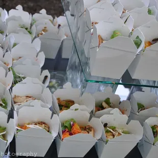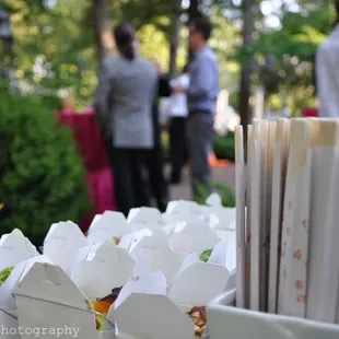 La-Tea-Da came to cater our neighbor's party which I attended. It was absolutely amazing! It seems like they do a lot of events for the party planner (our neighbor's son) so I believe they were expecting nothing less than awesome.Their food, I thought was very cute. They served mini burgers, chips, meat balls, pork, vegetables on sticks, rice, and dessert (which I thought was the best). The service was amazing, very courteous and nice, getting all the guests what they needed and happy. The dessert was a sort of a strawberry cake mixed with strawberry topped off with whip cream. I thought it was amazing.In the end, I believe all the guests had a wonderful time. The food was part of it and well the alcohol was another! I would definitely think of this catering if I ever need them in the Charlotte Area.
