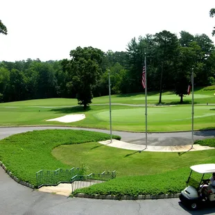 Nice course of three nines. Good design of bunkers. Greens are tricky. Need to hit landing zones. Afterward we had lunch at the clubhouse. Being July 3rd scheduled staff was low, so we did wait a while for our food. Menu has a good selection of salads and sandwiches. The wedge and Asian noodle salad were good. Sandwiches looked good, but weren't huge. The special was a Nashville hot fried chicken sandwich which was a large piece of tasty chicken and not too hot. Some things tasted a bit salty. Our waitress was very good and friendly. She told us that the kitchen was short staffed, which we appreciated.