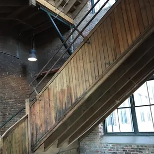 Loray Mill Event Hall is 3,023 square feet of original brick, a high bay ceiling, and antique windows. It can fit 420 people maximum.