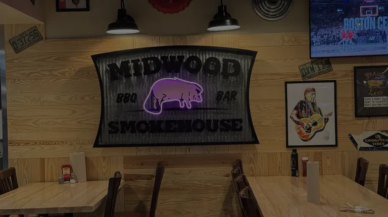 My boss and I stopped in because of the wonderful smell of BBQ emanating from the restaurant as we headed to our Gate. We were seated quickly near the entrance and were told that we didn't need to scan the QR code for the menu to order as they had servers running around. The place was pretty packed with people at the bar and people in the booths and the tables. They had TVs on in there, all on the same NBA game.We looked over the menu and while I was hungry, I didn't want to eat something heavy I definitely wanted to get some meat from them. I got The Roadhouse burger (chuck & brisket burger patty w/ketchup, mustard, pickles, American cheese, lettuce and tomato on a buttery bun) with sweet potato fries. He got the 1930 Cheesesteak (Thinly sliced smoked brisket w/Boar's Head White American cheese, mayo andcaramelized onions on a traditional hoagie roll) with a side salad. We didn't have to wait long for our order to arrive and we dug in. My burger was pretty dang good! The patty was very juicy. You'd think that the burger was kinda small but for we it was the perfect portion. I ate that and about half of the fries and I was done. My boss ate all of his sandwich and the salad. He was thoroughly impressed with the portion and taste of his plate. Very happy we came and now I know that Midwood is a good place to stop in.