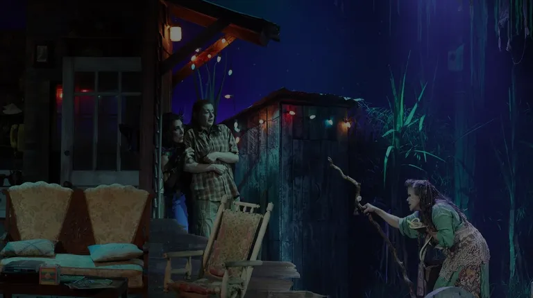 Bright Star is a powerful script that is magnified by the Mill Town Player's innovative and stunning set design that features amazing wood work, creative design, and lights that build with the story. Actors come with various backgrounds and experience levels that combines for an authentic show of touching and powerful moments. Stand out Hannah Thompson vocally soared showing vocal abilities in blue grass, belt, and ballad that were synergistic as she switched back and forth seamlessly to her younger self several times throughout the show.
