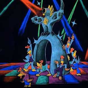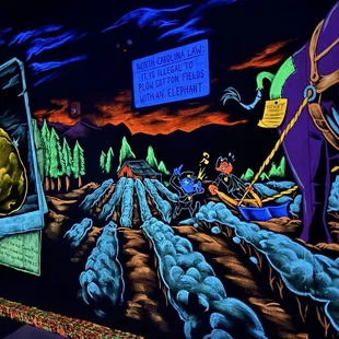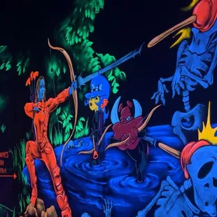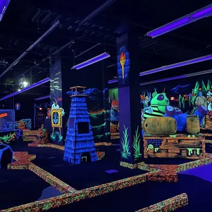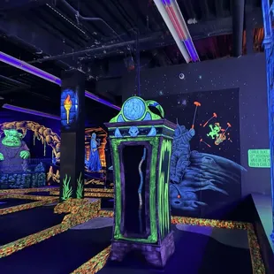 Fun family activity! The whole place is set under black light so everything glows. All the artwork is hand painted so very original and some is Charlotte-themed. Definitely spend time looking at the art, it's well worth it and a lot going on.