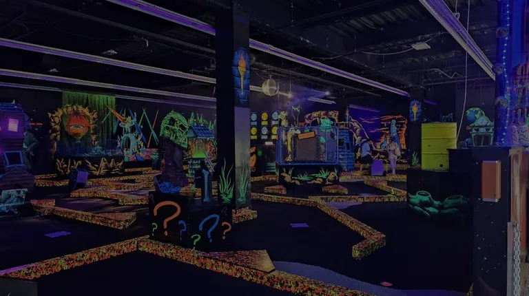 I haven't played mini golf in a while so obviously I was needing some practice. Pleasantly surprised by this very random indoor putt putt atop a strip mall in Charlotte. Black lights, cool monster theme, full 18 hole experience. It was really empty on the Monday we visited so we had the whole place to ourselves to play at our own pace. I imagine this would be a great place for a young kid's bday party but also a fun place to spend a little time on a rainy day as an adult. The games outside aren't cheap so if you're planning to bring a bunch of kids be warned - you'll be spending a bit. Just mini golfing with a couple of people is fun though. Easy parking and there's plenty of food places nearby if you want to eat too.