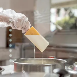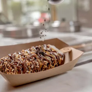 Wow. Such an amazing dessert. I had been so curious about this spot ever since it opened and WAM BAM I AM THIS Mexican frozen dessert is clean tasting, fresh, and has just the right amount of sweetness!!! There are sooooo many options to choose from when it comes to the ice cream (vegan options too) and then there's also sooo many great choices for step 2- the dipping and finally step 3 the toppings! I got the pistachio ice cream with the waffle option wrapped around my ice cream like a tight squeeze, dipped in dark chocolate and topped with peanut pieces! It had the crunch, the sweetness, and the staff working provide the magic!