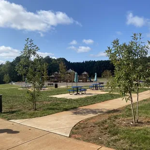 A really fun, brand new park with lots to offer. There is plenty of parking throughout, so you can park close to whichever activity you are doing. We went to the playground and walked on one of the trails. The playground was very nice and quite large. There is a lot of net involved in the playground so if you're little one is a little scared, this may be a little too advanced. There are plenty of benches surrounding the playground with trash cans and a bathroom. The paved trail that we took, Stormie Normie, was really nice down to the water where we saw the kayak drop in area and another waterfront area. There was 2 picnic tables in that area as well, in the shade, perfect for lunch. There is parking in the lake front area, if you wanted to just park there and not take the trail. Great park and can't wait to come back to see what else it has to offer.