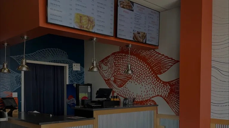 This location is very small and is only doing take out right now, there is no dine-in seating. All of the food looks so good in these pictures on Yelp, but I found the taste to be lacking. My fish did not smell fresh and I only ate a few bites of it. I did eat the shrimp and they were fine, but tasted previously frozen. The batter did not stay on either. The fries had a frozen taste as well.Service was very nice and helpful.All in all, I was disappointed with the food, but will return to take a shot at the garlic shrimp or crab.
