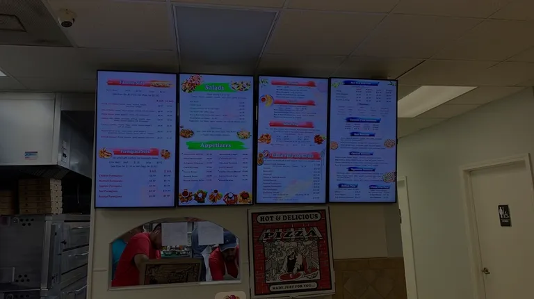 The size of a single slice of pizza is amazing. They have a really good two slice of pizza and drinks special. The size of the pizza is like NY style. Has that brick oven taste and style. Nice delicious pizza and Philly cheesesteak is a must as well. If you're in the mood for a slice of pizza this is the perfect place. Service is good and fast. Do have a small sitting area or grab to go. Yes we recommend this spot for a couple good reason. Price and good food.