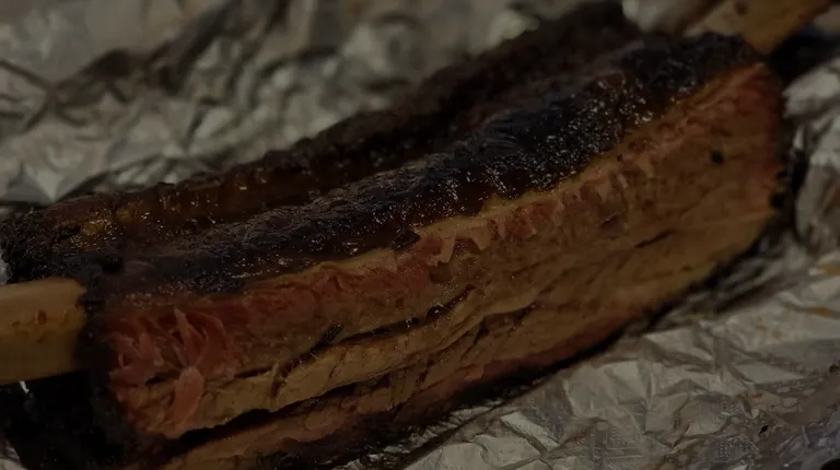 a rack of ribs wrapped in tin foil