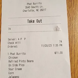 Phat is back!!! So full disclosure: I used to live in the building next to Phat Burrito (before it turned into Flowerchild) so I was a regular. I do miss the charm of "Charlotte past" since PB was a trailblazer in the Southend area.This return to "lower Southend" was very welcome to me and, though I miss the bars on the window, I'm glad they are making their space their own.The staff is super friendly. If you dine in, you are given a table number that you prop up on the paper towel holder at the table and the food is brought to you when it is ready.This new location has some nice booths and even outdoor seating.With all the new apartment buildings coming online, I'm sure parking is going to be a thing, but for now, there's plenty of street parking on Tryclan Drive and Dewitt Ln.I'm usually a burrito guy but decided on a salad for this particular visit. The salad was ginormous and I ended up taking it home for another meal later in the evening.Staff buses the tables (which I felt self conscious about becuase I usually like to clear my own table). There's also a station to grab silverware and a variety of hot sauces to use on your meal. I did end up returning the hot sauce to the hot sauce station in an effort to help out the table bussing :)Aside from the tables in the dining area, there is a bar area, full bar and TVs to watch various sporting events. Art on the wall is cool, I recognized homage to the old location in some of the art hanging along the dining room walls.