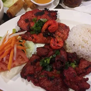 Bun vermicelli with barbecued pork and shrimp