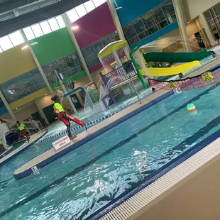 I had the privilege of taking my 8 year old son here for a birthday party as my wife was busy. The first thing is that parking is a nightmare - I used to live at 5th and Poplar, so I know street parking - but there really isn't a convenient location to park and carry presents, a bag, and towels. The place is so over crowded, the place is open to the public and there are multiple parties going on - so figuring out where to go is a little confusing with so many people crowding the area. The staff were friendly and helped get us to where we needed to be. Someone else mentioned it - the indoor park concept is awesome, but a capacity and time limit need to be set - like you can come for 2-hours starting at every hour till full. The locker area is small and felt dirty - I didn't bother trying to shower my kid there and just took him home to hose off. Once getting out to the pool area - the smell will definitely hit you. It's not Chlorine as most people think, but Chloramine - and it burns your eyes. If you don't know what Chloramine is, let me ruin your day and save you a google search: "Chlorine is used at aquatic venues to kill germs, but when it binds to the body waste swimmers bring into pools, it can form chemicals called chloramines." This is nothing against the facility - it means they are treating the water correctly - it's just over crowded and a lot of people are dirty. For example - you aren't supposed to have food/snacks in the pool area - but I watched 4 families pull out a small cooler and eat an amazing variety of brats, chili dogs, chicken, and sandwiches. Flip flops littered the floor randomly, and the air flow is fairly low despite giant fans making a lot of noise.On the away in I planned to go in with my kid, but after the smell and the number of people making it so crowded, I just worried about my kids safety. They have lifeguards - very hardworking ones who were busy the entire time trying to control everything. With the number of people it's easy for them to be busying trying to control a bunch of kids whose parents are not helping enforce instructions/warnings that they don't notice a small kid in an overcrowded area, or a bunch of teenagers throwing a football that kept hitting kids in the back of their heads. The 4-10 year old kids who can't swim well or stand would look scared at times. So I sat and kept a watch on my kid and helped pulled him out once till it was time to go-to a party room upstairs for pizza and cupcakes. He said he had fun, and the park is pretty cool, but I'm guessing that wouldn't have been the case if he wasn't there with 20 other kids he knew. To no surprise, my kid and I were both had COVID a few days later - but that could have happened visiting Lowe's as well. I guess if you get there when it opens and leave before it gets over crowded it would be awesome - but it's not something I find I need to go do again.