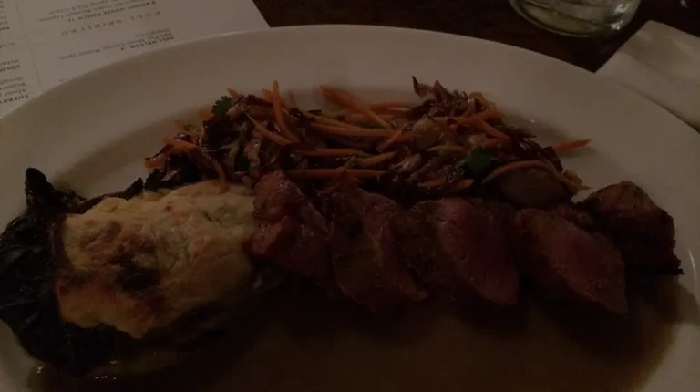 We enjoyed this farm to table restaurant! Our server, Nicholas, helped a lot with my sister's dietary restrictions. He checked things with the chef, offered menu suggestions, and was attentive and friendly. We sat in a nook by ourselves and it was so fun! The little touches, even in the restroom with the industrial toilet paper holders, candle, and yummy soap were nice! Our only wishes: a vegan/gluten free dessert that was not sorbet, and a smaller fish option with no eyeballs & bones!